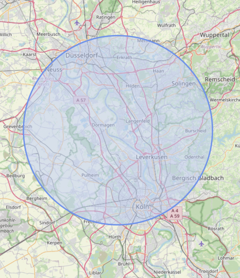 Unsere Pferdepraxis ist im Umkreis von etwa 40 Kilometern rund um Monheim unterwegs.